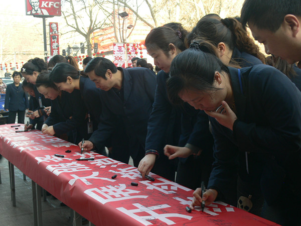 二樓亨達皮鞋部經理劉紅代表商場全體柜組宣讀了《誠信響應書》:嚴格遵守各項法律、法規(guī)和黨的方針政策,做自覺遵紀守法的經營者,認真貫徹“新消法”,履行法律法規(guī)所賦予經營者的責任、義務,自覺維護消費者權益。全心投入“大服務工程建設活動”,不斷提高服務水平, 堅決做到不銷售假冒偽劣商品,為消費者提供優(yōu)質產品,優(yōu)良的服務。以誠經商、以誠興商,杜絕一切違反誠信和安全消費的經營原則,自覺接受消費者的監(jiān)督,聽取消費者意見,不斷改進工作和服務質量,從我做起,爭當消費者心中最好的服務員,最誠信的柜組。