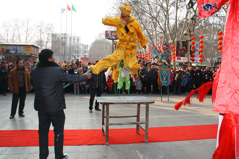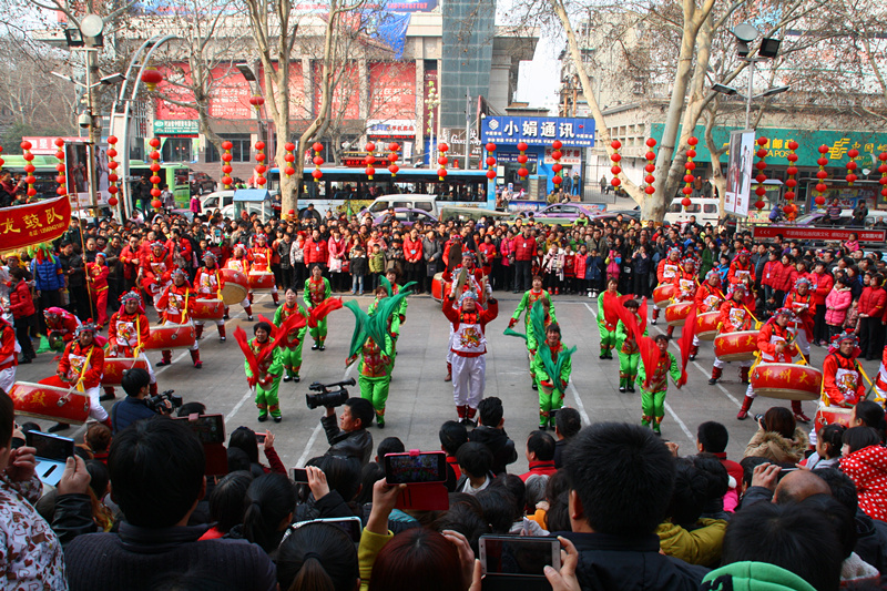 下午三點整,傳統(tǒng)民俗文化廟會在馳名中外的“中州大鼓”的鑼鼓聲中震撼開場,商場廣場在那一瞬間成為了市中心的“中心”,如同井噴般的人潮,迅速將廣場圍的水泄不通。人群中,有的“搶占先機”,提前找好有利位置;有的“隨機應(yīng)變”,尋找一切可以鉆進(jìn)人群的機會,只為了更加近距離的感受中華傳統(tǒng)民俗文化的魅力。