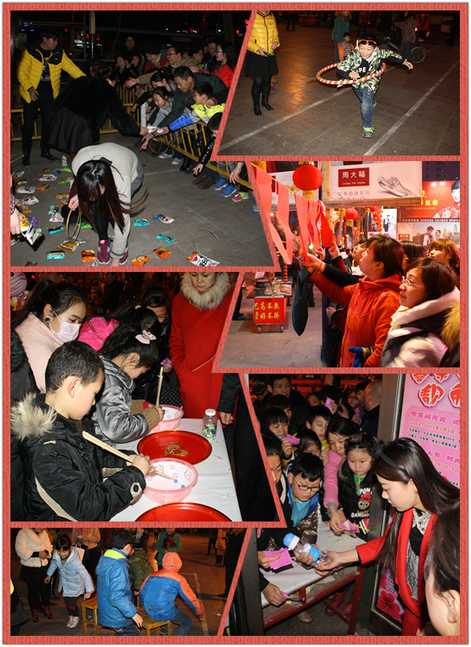 這邊文化廟會的鑼鼓將熄,那邊的廣場游園會又閃亮登場。商場按照往年的“慣例”——提前下班,邀請廣大市民朋友、職工、職工家屬一起參與到游園會中,大家一起玩轉(zhuǎn)傳統(tǒng)小游戲,這邊猜燈謎,那邊瞎子敲鑼,中間又是兩人三足、搶板凳……總之,幾十種小游戲穿插其中,隨意參加,想怎么開心怎么來,要怎樣高興怎樣鬧。玩完游戲還可以領(lǐng)禮品,一時間,商場廣場再一次沸騰起來!正月十六的圓月當(dāng)空,商場的彩燈映照,廣場上熙熙攘攘的人流與歡笑聲,職工與市民朋友同樂,構(gòu)成了一幀靈動的圖畫,如此的和諧、幸福。