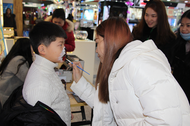 今日10:00-18:00,凡購物滿100元顧客,憑銷售小票到一樓中廳—— 免費hua 圣誕彩繪妝