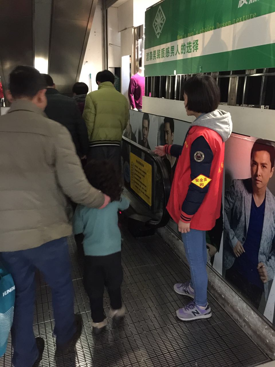 本次社會實踐活動的時間是2017年元月1日至26日,活動內(nèi)容是在商場值守手扶電梯,確保顧客乘梯安全。為了使大學(xué)生們更快、更好的融入這一工作角色,商場總經(jīng)理助理朱嵐嵐細(xì)致安排商場團委、商務(wù)服務(wù)部、資產(chǎn)管理部聯(lián)合對他們進(jìn)行工作流程、服務(wù)禮儀、電梯日常管理、維護等針對性的崗前培訓(xùn)。