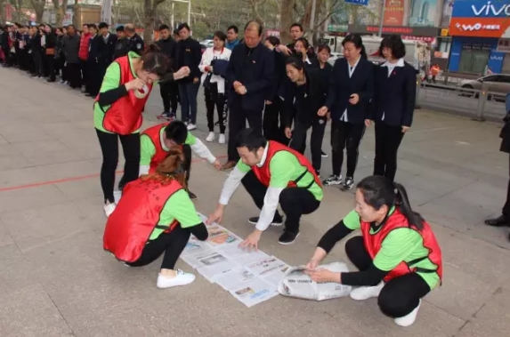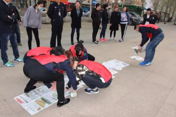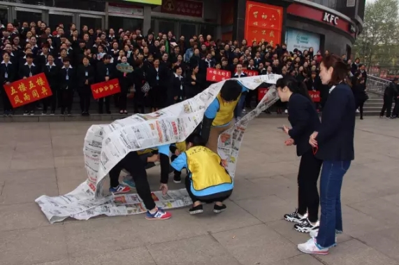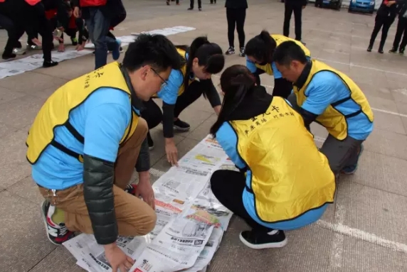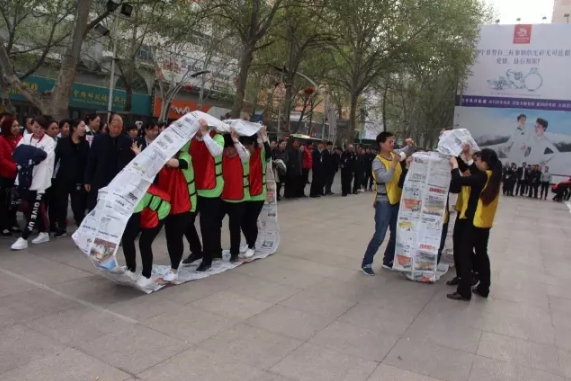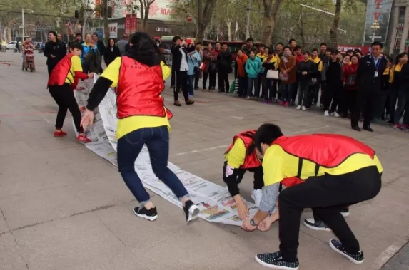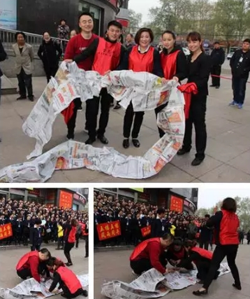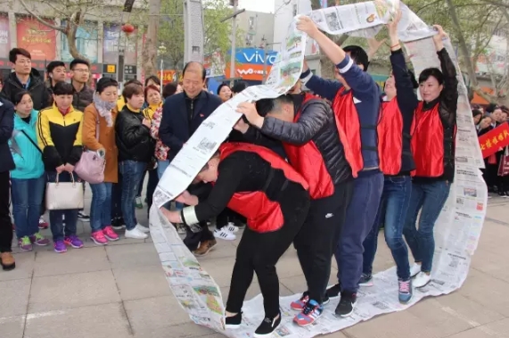 財源滾滾比賽用廢舊報紙做道具,既體現(xiàn)了廢物二次利用的環(huán)保理念,又增加了比賽的趣味性,節(jié)省了制作道具的人力和物力的開支,可謂是一舉多得,更巧妙的迎合了商場時下正在開展的創(chuàng)爭活動的內(nèi)涵。