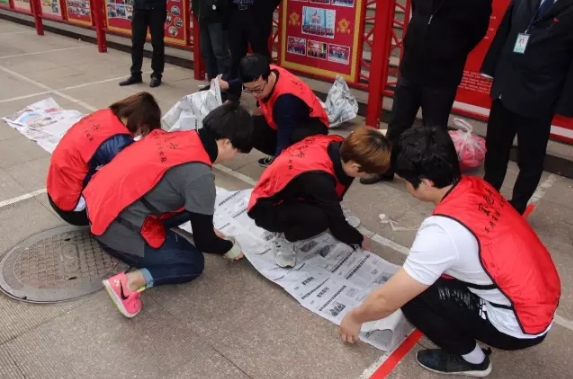 今年的道具卻是每個參賽隊在比賽現(xiàn)場用23張廢舊報紙和透明膠帶做的,制作道具的時間算入整個比賽時間,途中如遇道具損壞需要修補后才能繼續(xù)前行,并且,本次比賽商場沒有組織賽前訓(xùn)練,全憑參賽隊員們現(xiàn)場發(fā)揮。