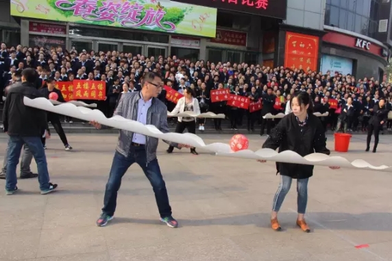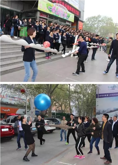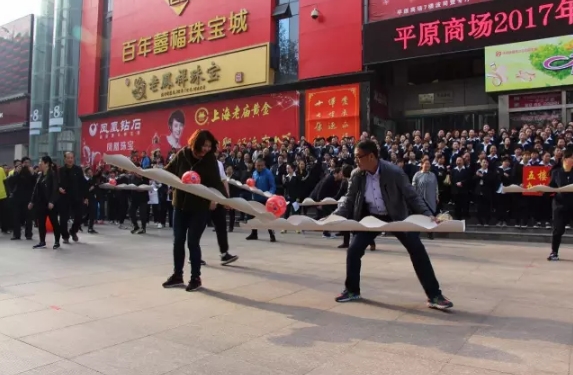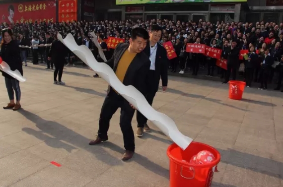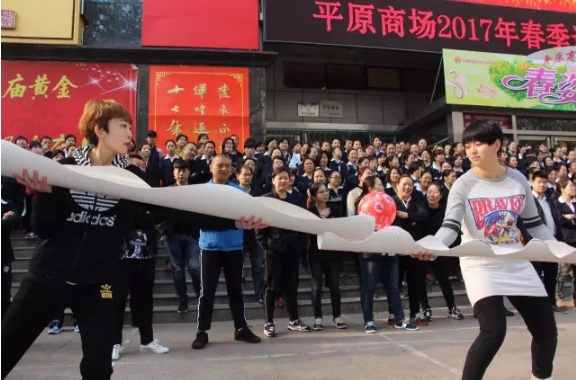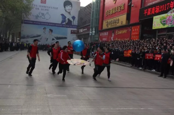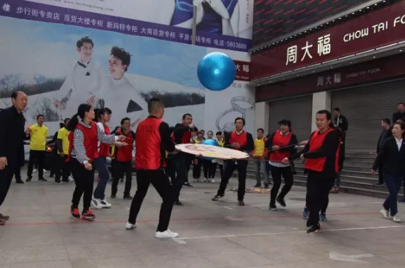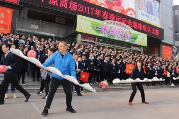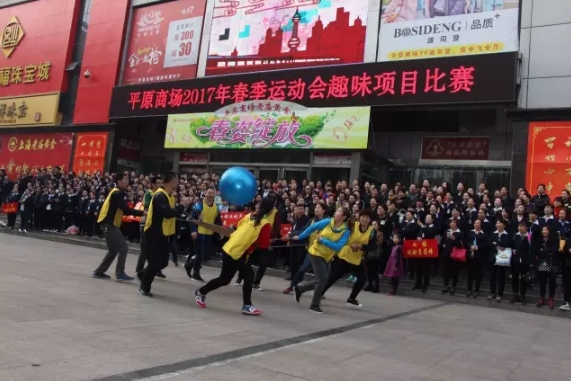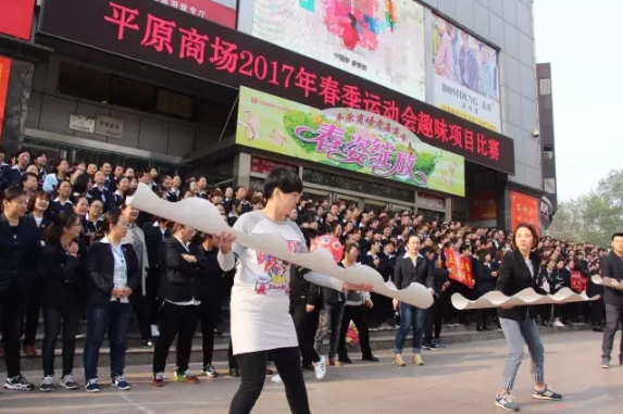 今晨7點30分,商場春季運動會趣味比賽“雷霆戰(zhàn)鼓”和“引水上山”兩個項目的比拼依次進行。