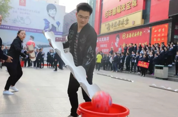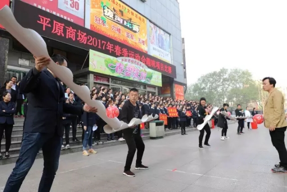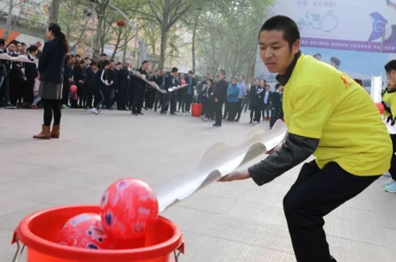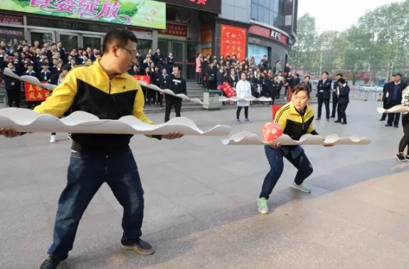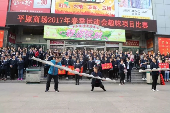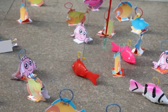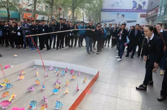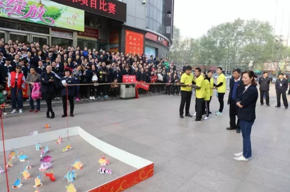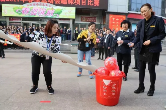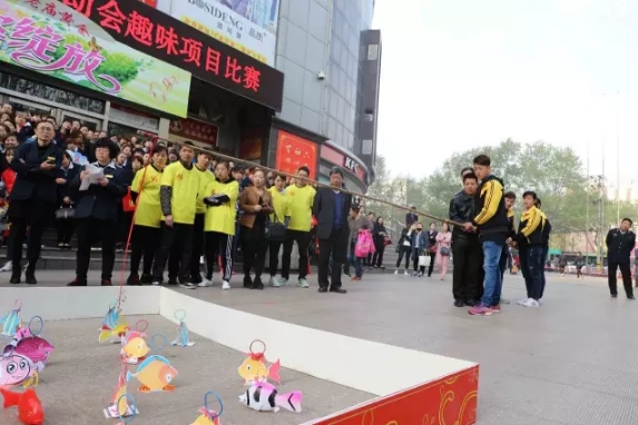 今天早晨7點30分,本次文體活動月的趣味游戲——引水上山和長竿釣魚兩個項目,準時在商場北門廣場進行。