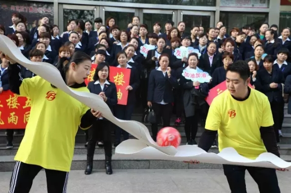 昨日進行一半的“引水上山”比賽,作為今日早晨的開賽項目。余下的六個參賽隊隊員繼續(xù)在廣場上一字排開,巧妙平衡、默契配合,力爭用最短時間、最高效率將10個球接力運送到位。經過激烈的比拼,二樓參賽隊的隊員們團隊力量更勝一籌,取得本項目冠軍。